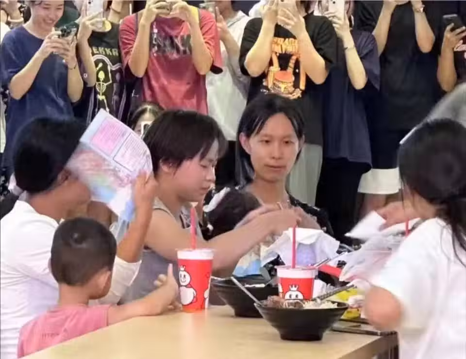 全紅嬋埋頭乾飯,絲毫不管周圍的人群。