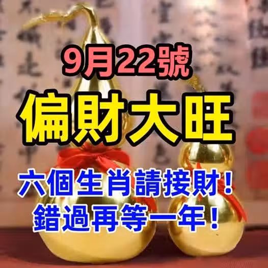 9月22號偏財大旺,六個生肖請接財!錯過再等一年 !