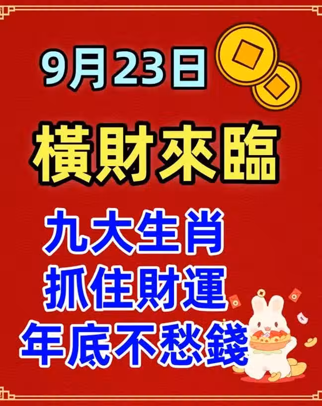 9月23日橫財來臨,九大生肖抓住財運,到年底不愁錢