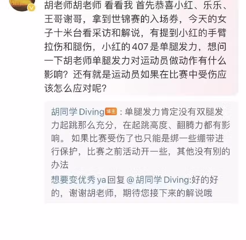 在傷病頻繁侵襲的情況下,全紅嬋每一次比賽都貼滿膠帶,預防肌肉再次拉傷,在後續的比賽里,全紅嬋每一次比賽都是帶傷出戰,細心的網友拿全紅嬋受傷前後的比賽動作作對比,發現全紅嬋腿部的傷勢並不簡單,因為她直接改變了自己的起跳方式,從原本的雙腳起跳變為單腳,這讓全紅嬋在起跳高度控制以及空中動作變化都有很大的影響。