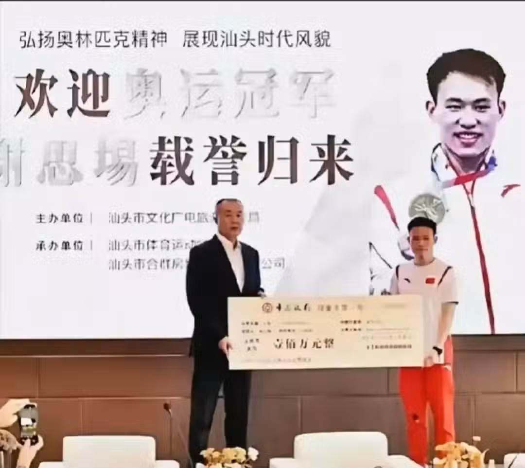 在先一步回到了家鄉之後,謝思埸得到了家鄉汕頭企業的獎勵,據悉,汕頭某房地產開發商官宣獎勵給了謝思埸一套價值165萬的房子,同時還給了謝思埸100萬的獎金,這一回家,師兄就收穫了265萬的獎勵,看到師兄收穫如此的獎勵,全紅嬋也表示為師兄感到開心,因為沒有人比全紅嬋更加理解師兄謝思埸在重傷之後還能歸來奪冠背後的付出。