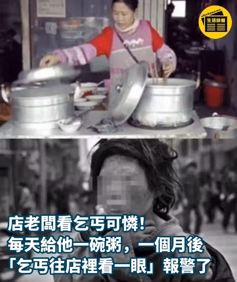 店老闆看乞丐可憐!每天給他一碗粥,一個月後「乞丐往店裡看一眼」報警了