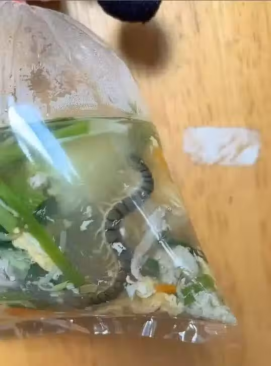 從照片推測,湯里是一隻被煮熟的蜈蚣,再度讓網友驚呼,「蜈蚣大補湯」、「你點的是青菜蜈蚣蛋花湯」、「真.冬蟲夏蜈蚣」、「蜈蚣耶...大補啊」、「可怕,這我不行,也太大隻了,切菜都沒把他切成兩半」、「好大條」。