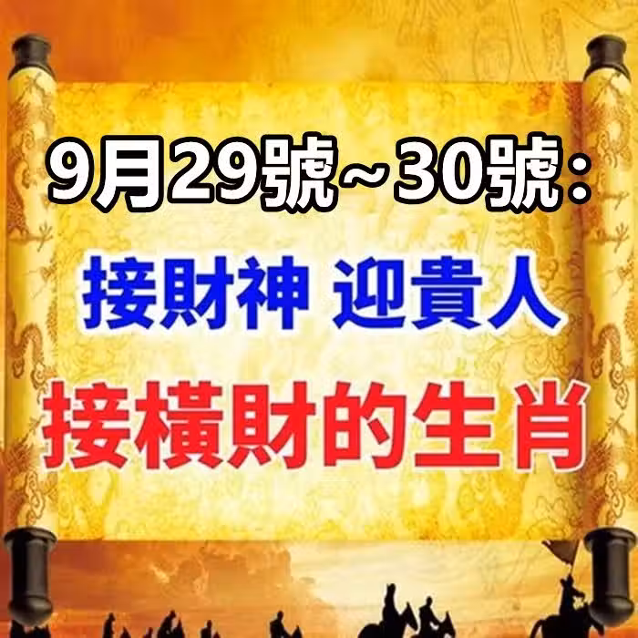 9月29號~30號:接財神 ,迎貴人,接橫財的生肖!