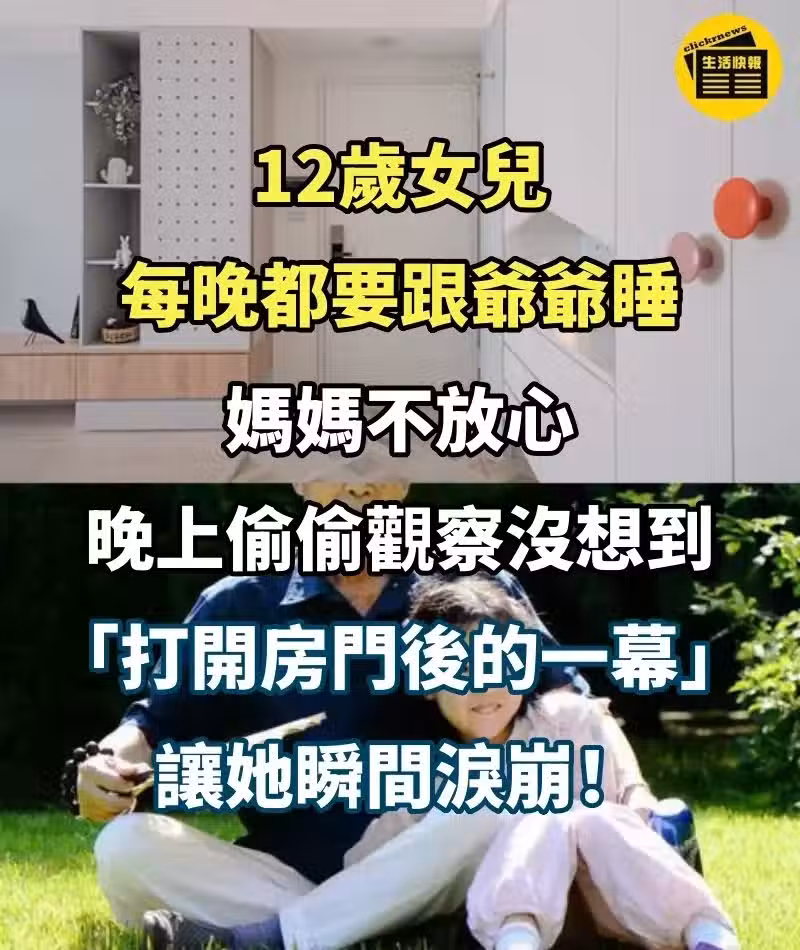 12歲女兒每晚都要跟爺爺睡,媽媽不放心晚上就偷偷觀察,沒想到,「打開房門後的一幕」 讓她瞬間淚崩