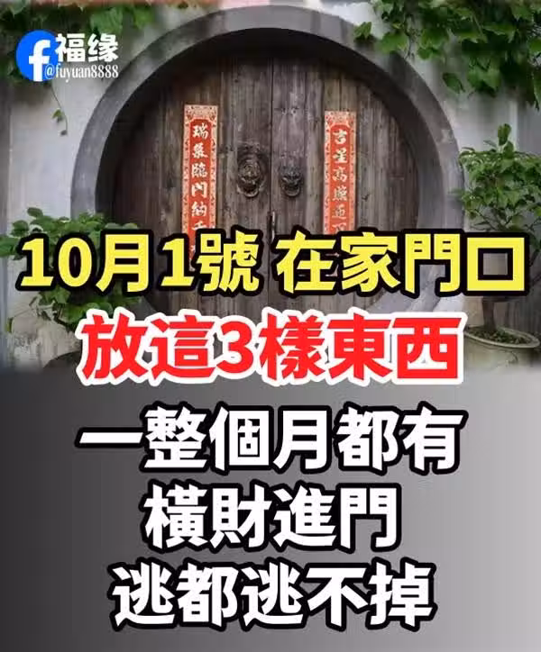 10月1號,在家門口放這3樣東西,一整個月都有橫財進門!逃都逃不掉 !