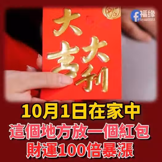 風水師偷偷透露:10月1日在家中這個地方,放一個紅包,竟能讓財運100倍暴漲,好運一路旺到年底!