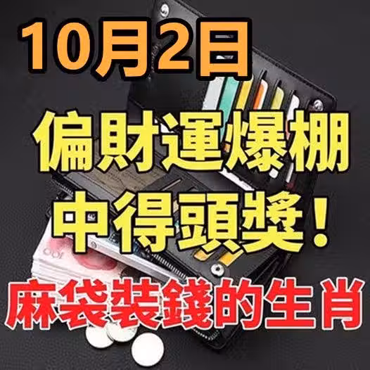 10月2日偏財運爆棚,中得頭獎!用麻袋裝錢的生肖!