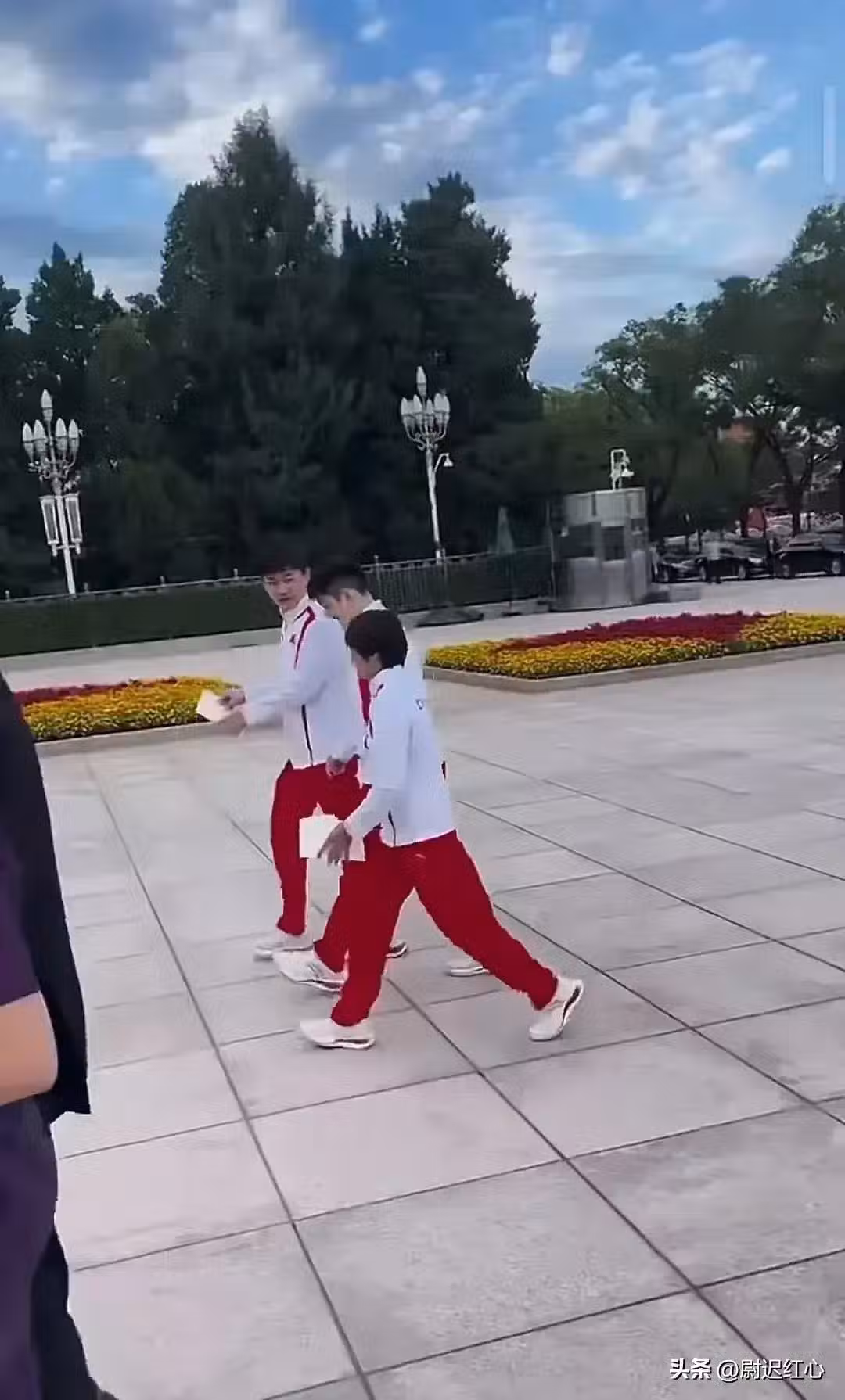 前往人民大會堂的路上,全紅嬋沒走幾步就遇到了樊振東,兩人對視一笑,看起來關係很不錯。