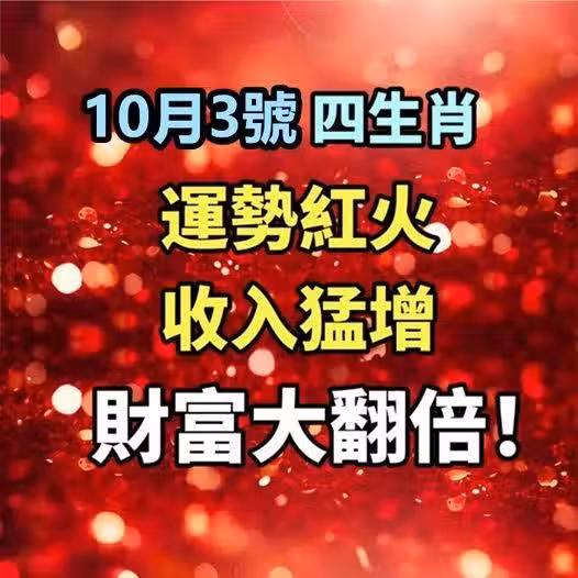 10月3號:四生肖運勢紅火,收入猛增,財富大翻倍!