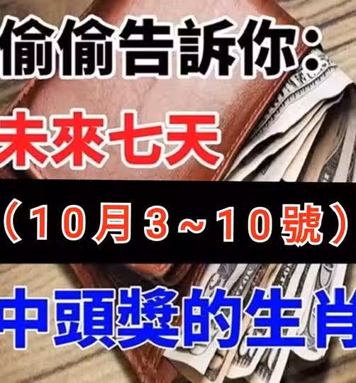 偷偷告訴你:未來七天(10月3 到 10號)中頭獎勢極高的生肖