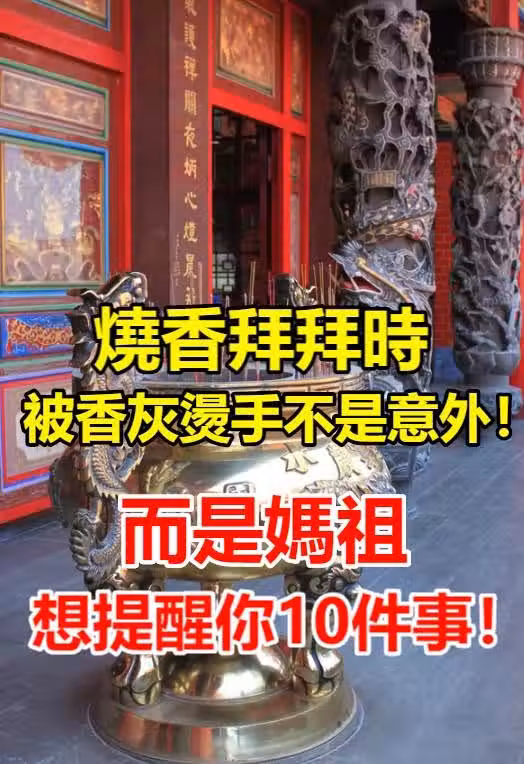 在我們華人傳統,不管是什麼日子我們都會在寺廟或家裡拜拜。 小篇相信很多人在拜拜時都試過被香灰燙到手,你以為這只是意外嗎? 其實這是媽祖要提醒你某些事情啊!事實上,燒香拜神被燙是有寓意的,一般共分好壞兩大類,具體十項事宜,如下: