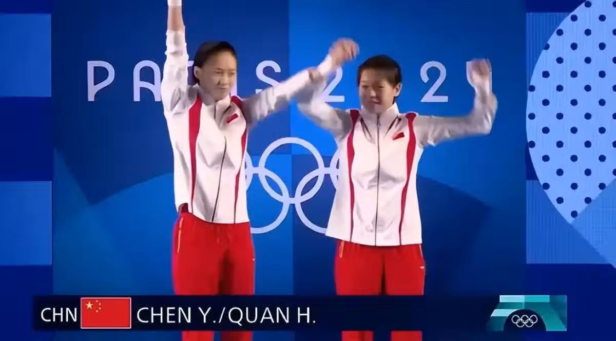 奪冠之後,全紅嬋可謂是將自己的本性「暴露無遺」,一改往日「社恐」的性格,直接化身「社牛」,心情過於激動,一躍跳到了搭檔陳芋汐身上。