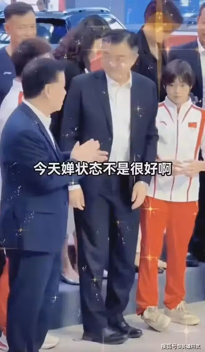 可是全紅嬋並不高興,從一開始坐專門的大巴車下車慢慢走進來,就一直板著臉低著頭,像受傷的小孩一樣很不情願。