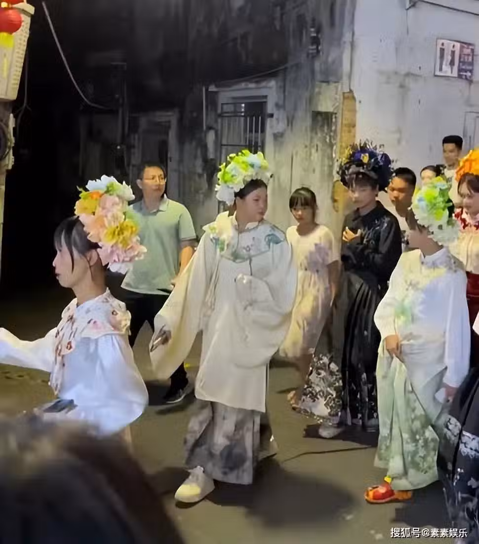 全紅嬋戴簪花和弟弟妹妹合影,全紅月變漂亮了,全進鵬比姐姐高