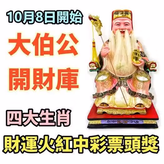 10月8日開始大伯公開財庫,四大生肖財運火紅中彩票頭獎