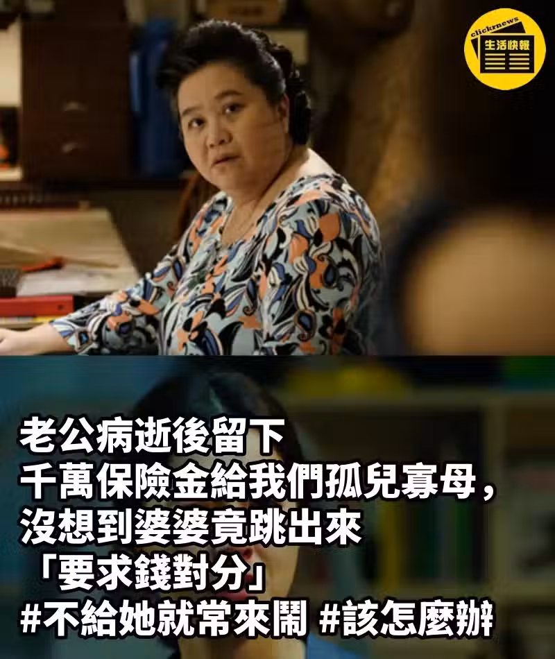 老公病逝後留下千萬保險金給我們孤兒寡母,沒想到婆婆竟跳出來「要求錢對分」 #不給她就常來鬧 #該怎麼辦