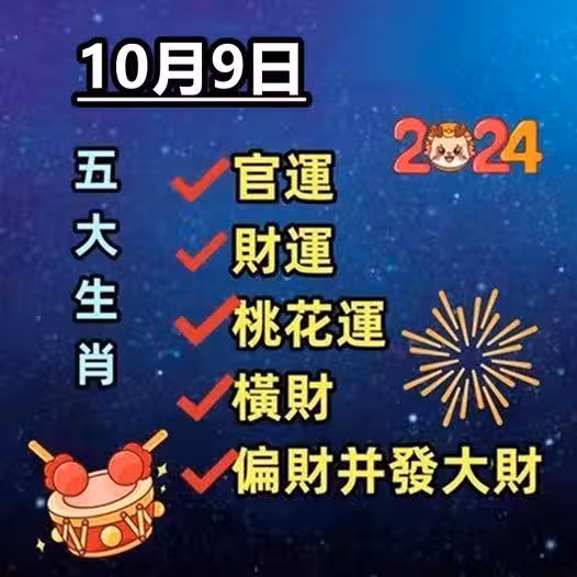10月9日:官運 財運 桃花運 橫財 偏財並發大財的五生肖