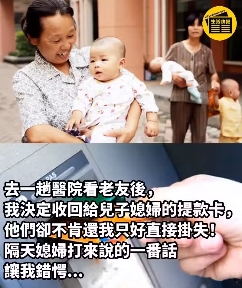 「去一趟醫院看老友後, 我決定收回給兒子媳婦的提款卡,他們卻不肯還我只好直接掛失!隔天媳婦打來說的一番話讓我錯愕...」