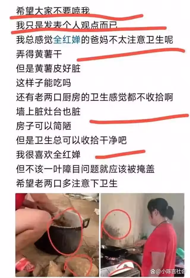 全紅嬋媽媽發聲了,她說:大伙兒都在議論,說家裡衛生狀況差