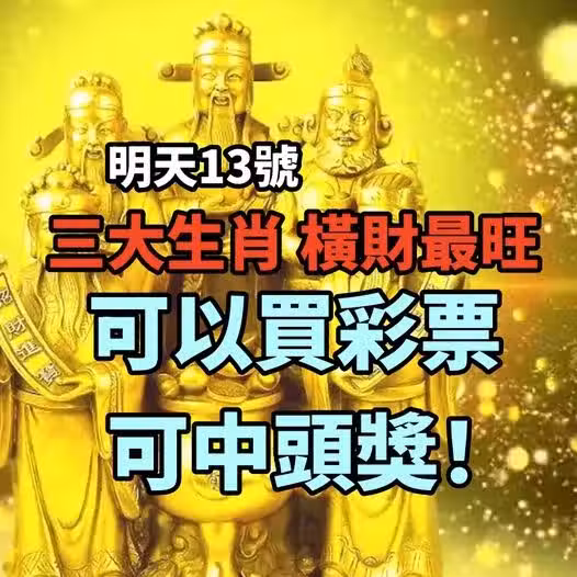 明天10月13號:三大生肖橫財最旺,可以買彩票,可中頭獎!