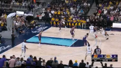 詹姆斯的突破吸引了普拉姆利、杜蘭特的包夾,帶來的使濃眉處於絕對空位。接到詹姆斯傳球後濃眉穩穩命中三分。