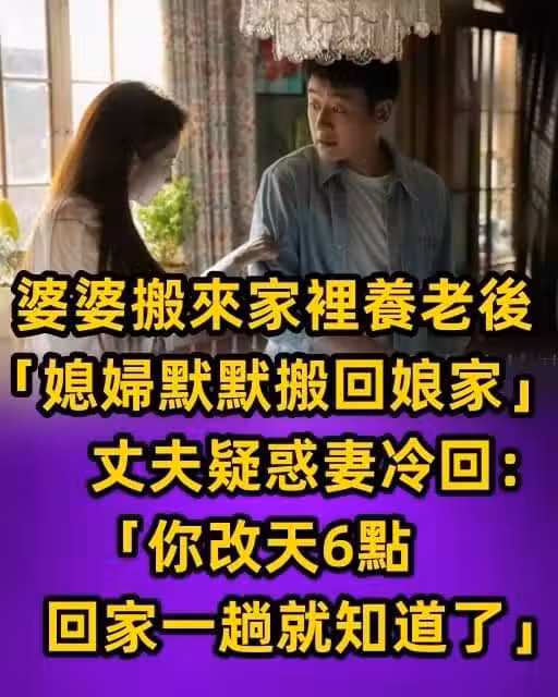 婆婆搬來家裡養老後 「媳婦默默搬回娘家」!丈夫疑惑妻冷回:「你改天6點回家一趟就知道了....」