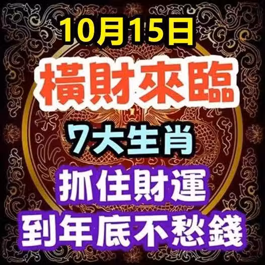 10月15日橫財來臨,7大生肖抓住財運,到年底不愁錢