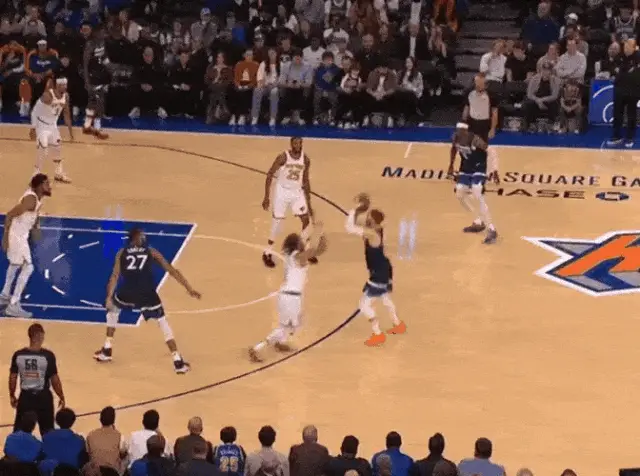 次節,迪溫琴佐還點飛了尼克斯的防守,衝到內線送出空接傳球,助攻戈貝爾完成扣籃