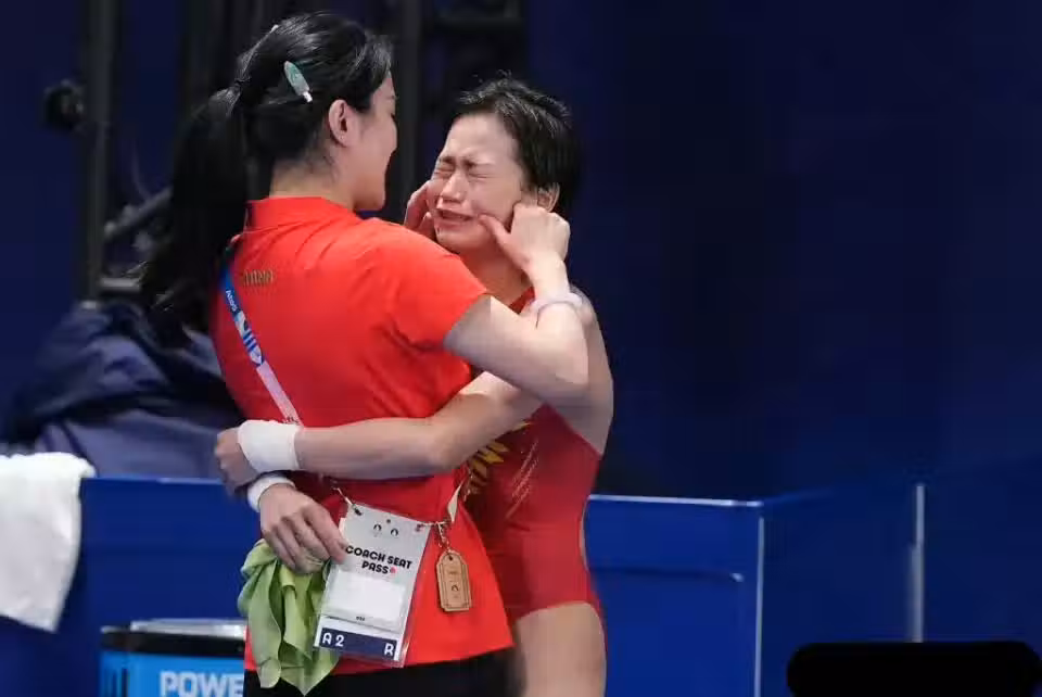 手握本屆巴黎奧運會兩塊金牌的冠軍全紅嬋,最讓人印象深刻的一幕,不是她生硬地拒絕記者教她學「拿捏」兩個字的英文單詞,而是她在單項比賽奪冠後,第一時間跳進了教練陳若琳的懷裡,久久痛哭,不能釋懷,情緒無法平息。