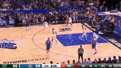 雖然小華格納已經在籃下要到位並且成功接到傳球,但波蒂斯有效頂住的前提下完成了搶斷。側面看,在遇到非力量型內線時波蒂斯具有一定護筐能力。