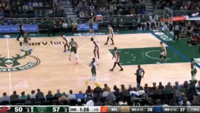 擋拆、順下,接球強起扣籃。這個回合字母哥雖有走步嫌疑但至少說明一點,運動能力確實強。此外,需要說明的是在字母哥終結瞬間樂福不敢輕易協防,皆因為站在底角大洛佩茲的前者。