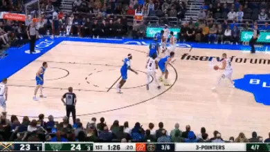 先是回防籃下完成封蓋,然後一對一下大洛佩茲又封蓋了約基奇。