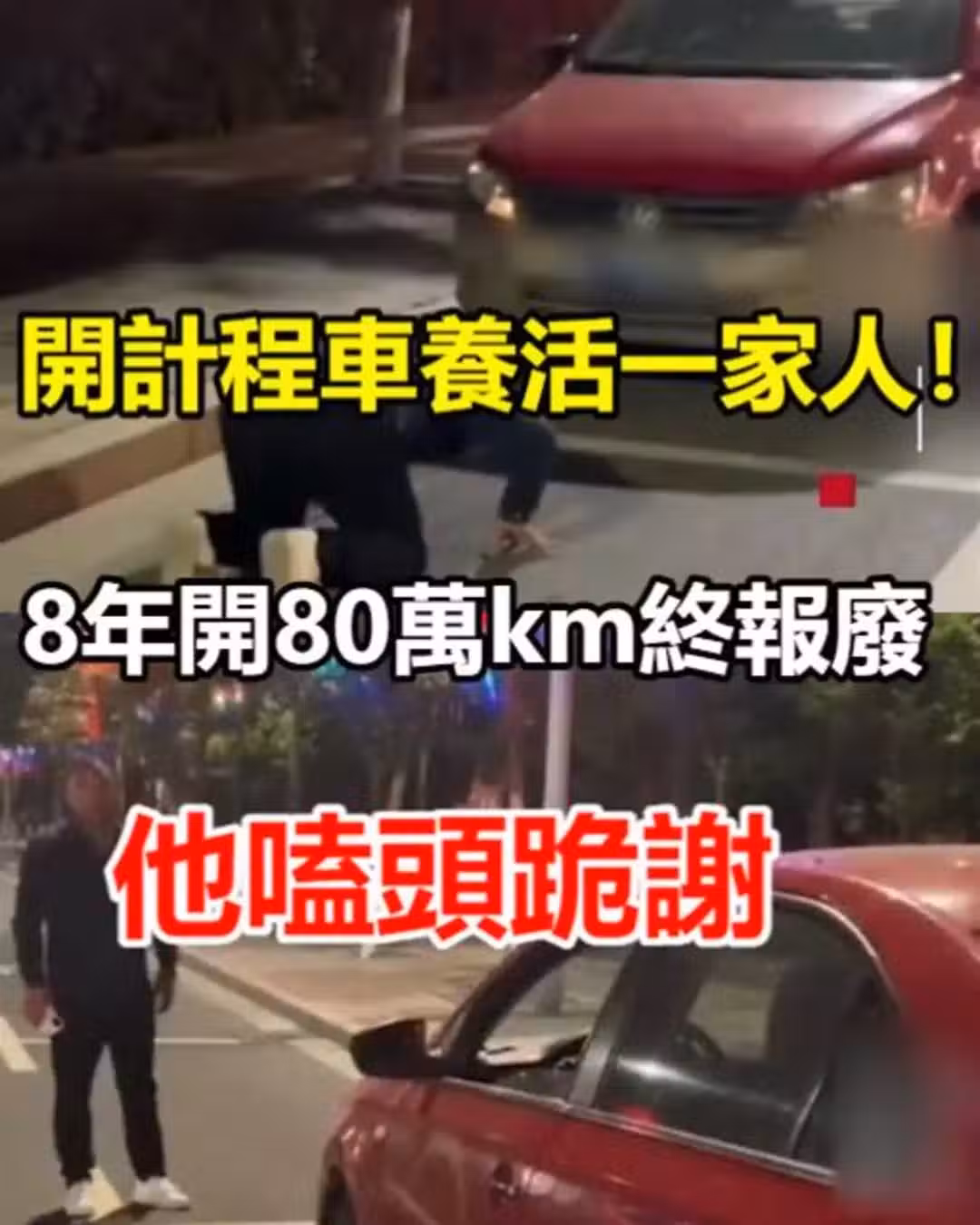 開計程車「養活一家人」!8年開80萬公里終報廢「他嗑頭跪謝」:謝謝有你