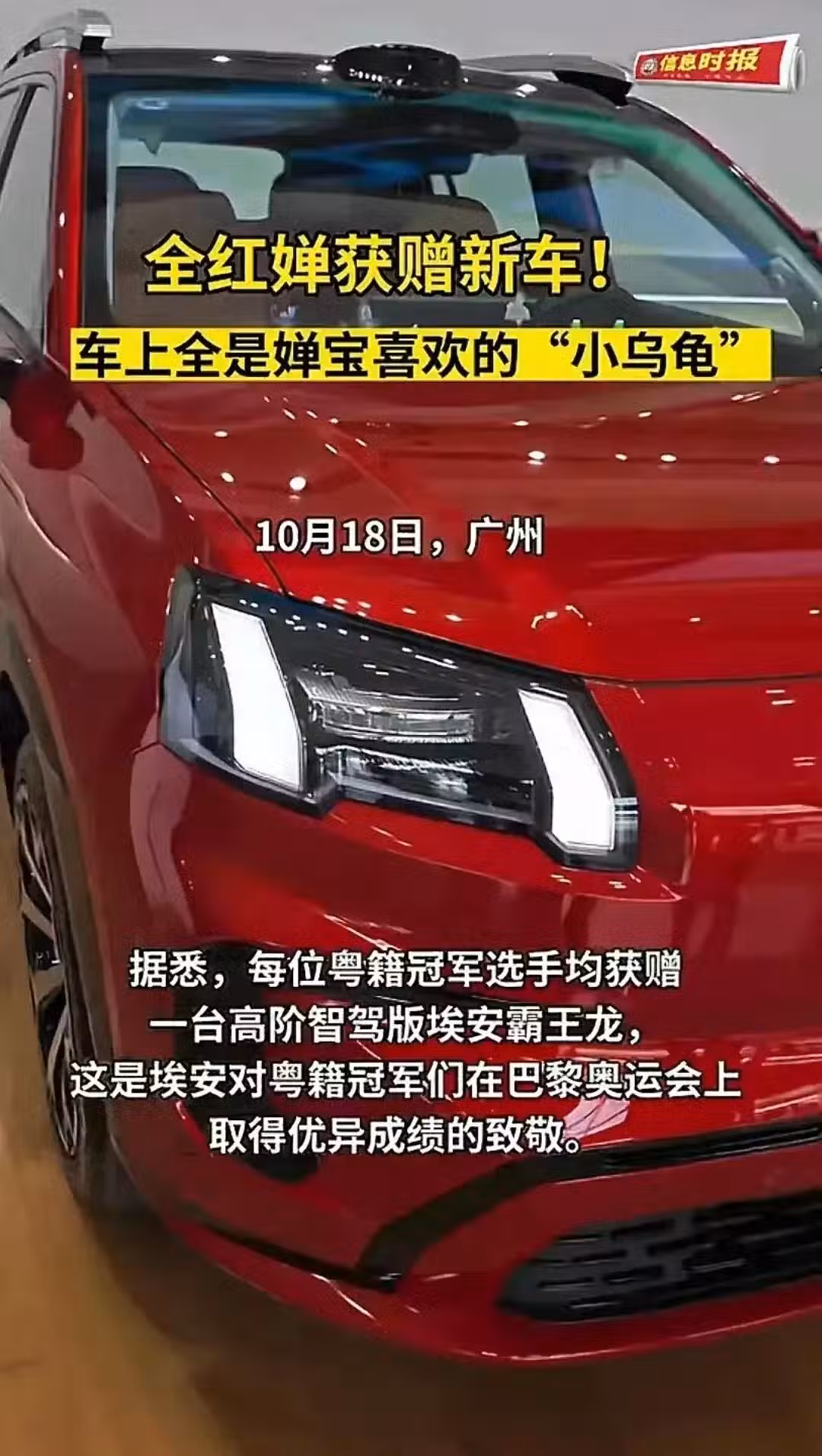 全紅嬋的成就可不是一朝一夕的事情,這背後隱藏了多少汗水和淚水,你知道嗎? 17歲的她,已經在國際舞台上高光無數次了。咱們不說遠的,就說最近的2024年,她已經開始為下一屆奧運會做準備了。而就在她忙於訓練的同時,廣東省人民政府送給了每個粵籍奧運冠軍一輛高階智駕版埃安霸王龍,可惜全紅嬋因訓練沒能親自出席,這車子是由她的父母代為接收的。想想看,這位小姑娘才17歲,已經擁有了三輛高端車,這可真是讓人羨慕啊!