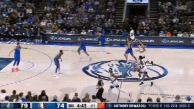 接到愛德華茲傳球的瞬間,里德完全牽制住了獨行俠的防守球員,從而為戈貝爾的順下創造出「大打小」的優勢。誠然戈貝爾的終結有犯規嫌疑,但重點是此前里德的戰術牽制——換個角度看,此時如果接球是不具備投射的大個子,獨行俠防守球員完全會協防籃下。