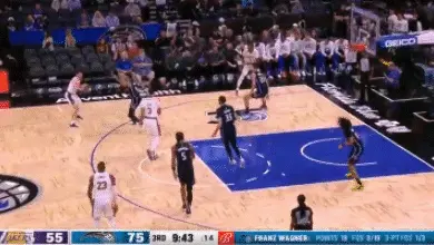 濃眉的提上成功將小華格納從內線牽出,由此為里夫斯的突破創造了空間。