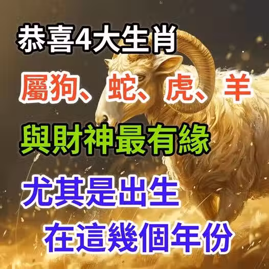 恭喜4大生肖【屬狗、屬蛇、屬虎、屬羊人❗】 與財神最有緣「尤其是出生在這幾個年份」的