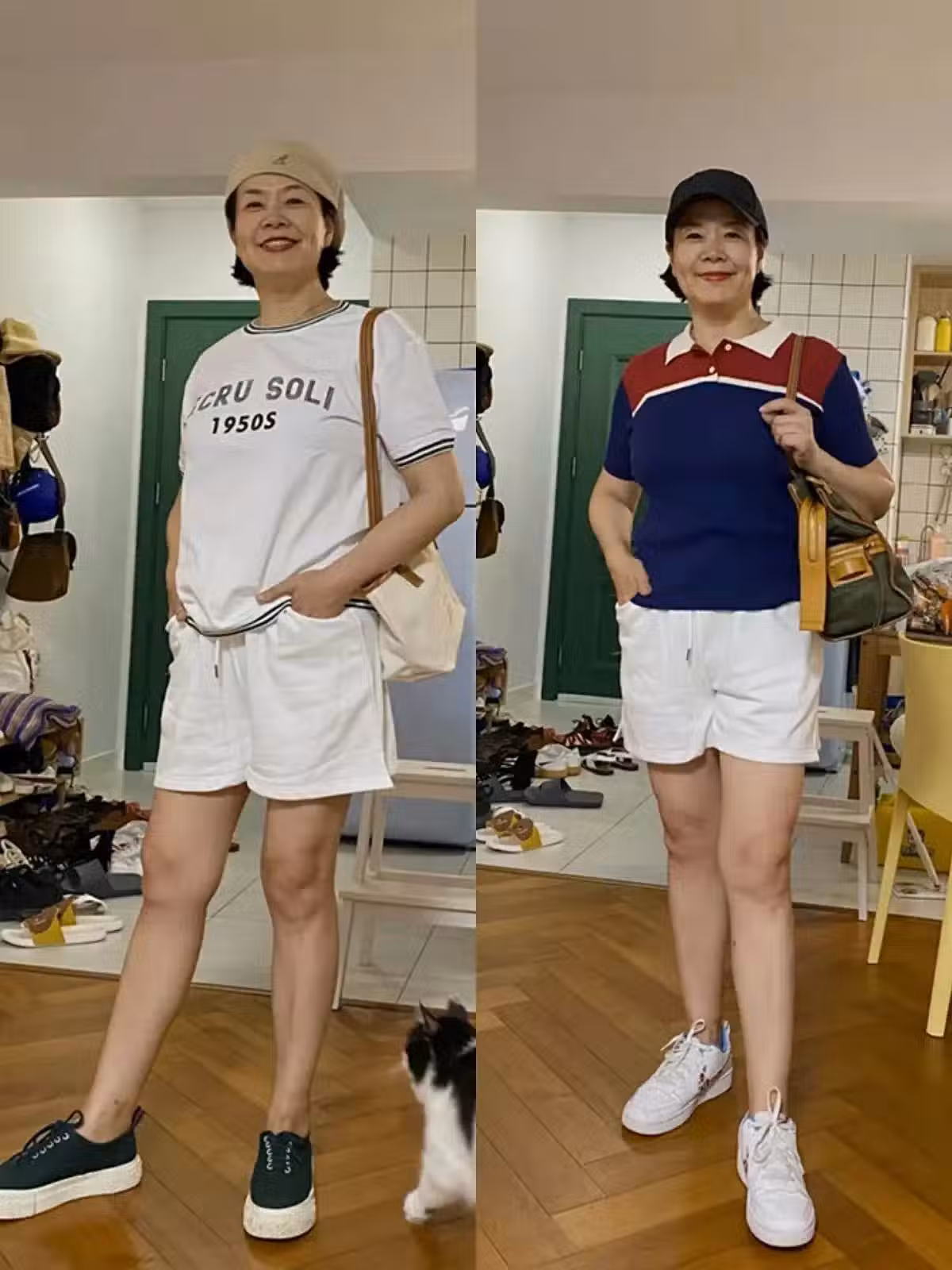 前者可以通過露出足踝來顯腿細,而高腰短褲長度在大腿三分之二部位,部分露出大腿區域,既修飾腿型,又顯小腿纖細。