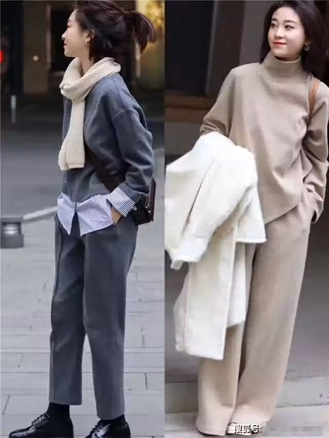 老奶奶毛褲通常搭配厚重的舒適上衣,比如秋季流行的針織開衫、羊毛大衣、收腰風衣、毛絨大衣、天鵝絨大衣等。強烈推薦這件可愛的夾克。整體合身可以是上短、下長、下緊。搭配時儘量有層次感才時尚。