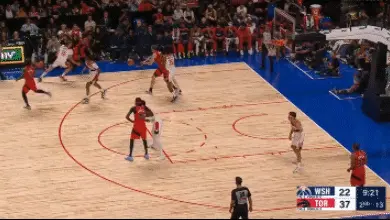 接到博爾特爾傳球後巴雷特有效突到了奇才籃下。值得一提的是,並沒有像此前那麼貿然起身上籃,而是靈巧躲過防守球員然後在輕鬆上籃。