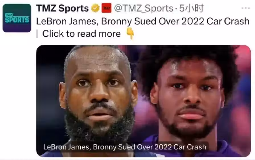 這倆人表示,他們當時受傷了,需要進一步醫療護理,他們的汽車也受損貶值,要求詹姆斯父子賠償明確損失。