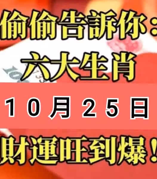 偷偷告訴你:10月25日 六大生肖 財運旺到爆