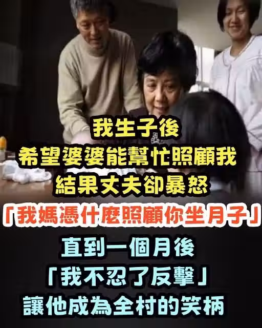 我生子後,希望婆婆能幫忙照顧我,結果丈夫卻暴怒「我媽憑什麼照顧你坐月子」直到一個月後「我不忍了反擊」讓他成為全村的笑柄...