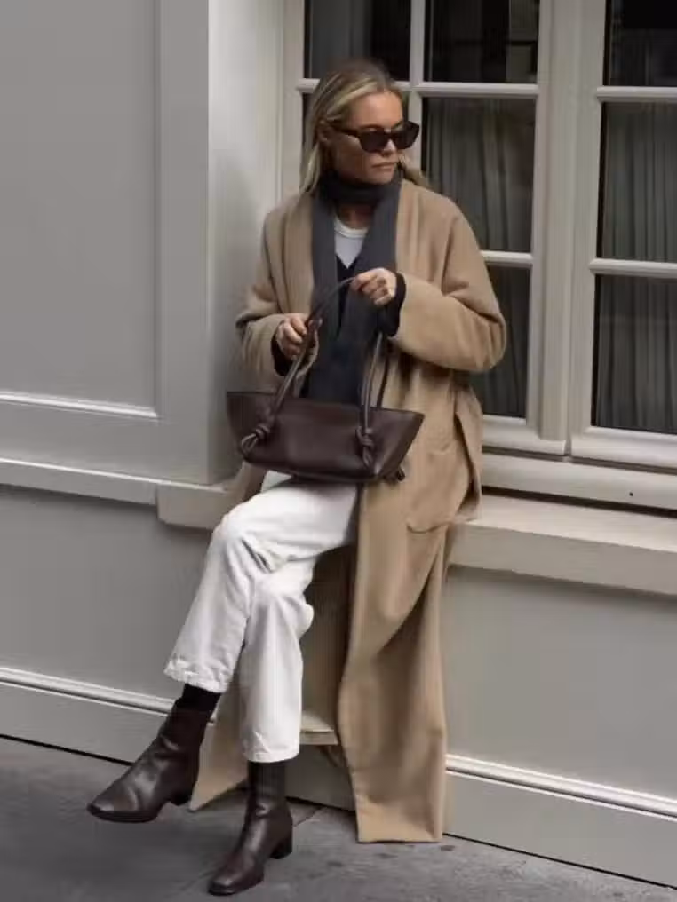 秋冬穿搭的時候要注意,冷白色的存在感很強,容易讓人的目光集中在下半身,如果你是腿型很好看的女生,更建議選擇偏暖的米白色,也更好駕馭一些。