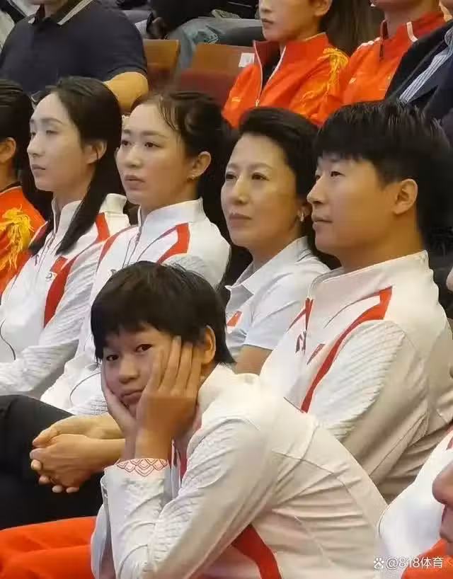 全紅嬋坐在百米飛人蘇炳添和國乒大滿貫得主陳夢中間,一襲白色奧運領獎服,略顯矜持。