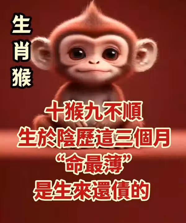 生肖猴:十猴九不順,生於陰曆這三個月「命最薄」,是生來還債的