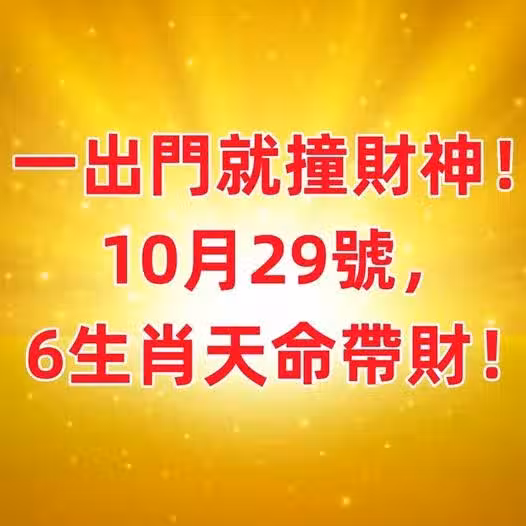 一出門就撞財神!10月29號,六生肖天命帶財!