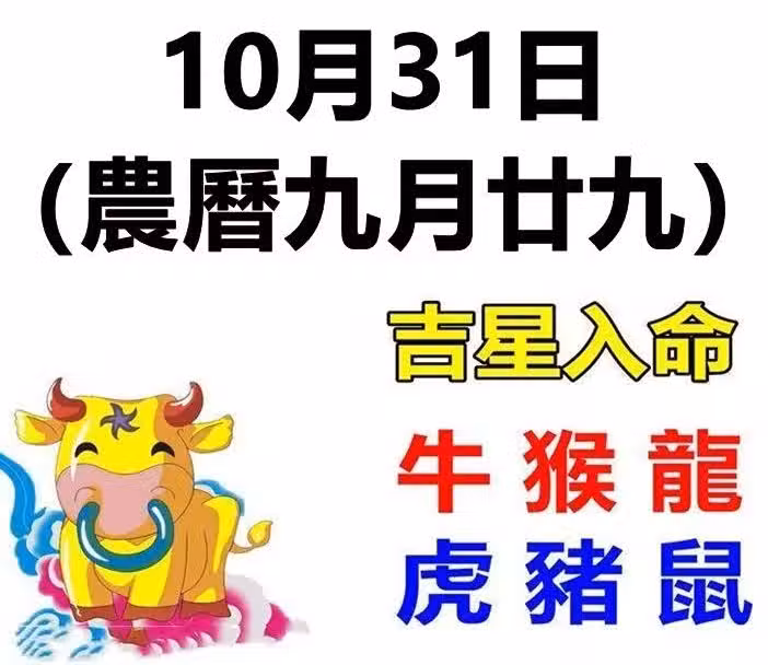 小運播報:2024年10月31日,星期四,農曆九月廿九。