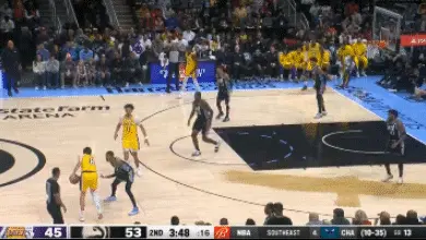 在海斯完全阻擋住福克斯后里夫斯完成一次非常精彩的突破攻堅。點睛之筆在於最後終結——打板只要防守球員觸碰到基本就是干擾球,結果來看也確實是干擾球。